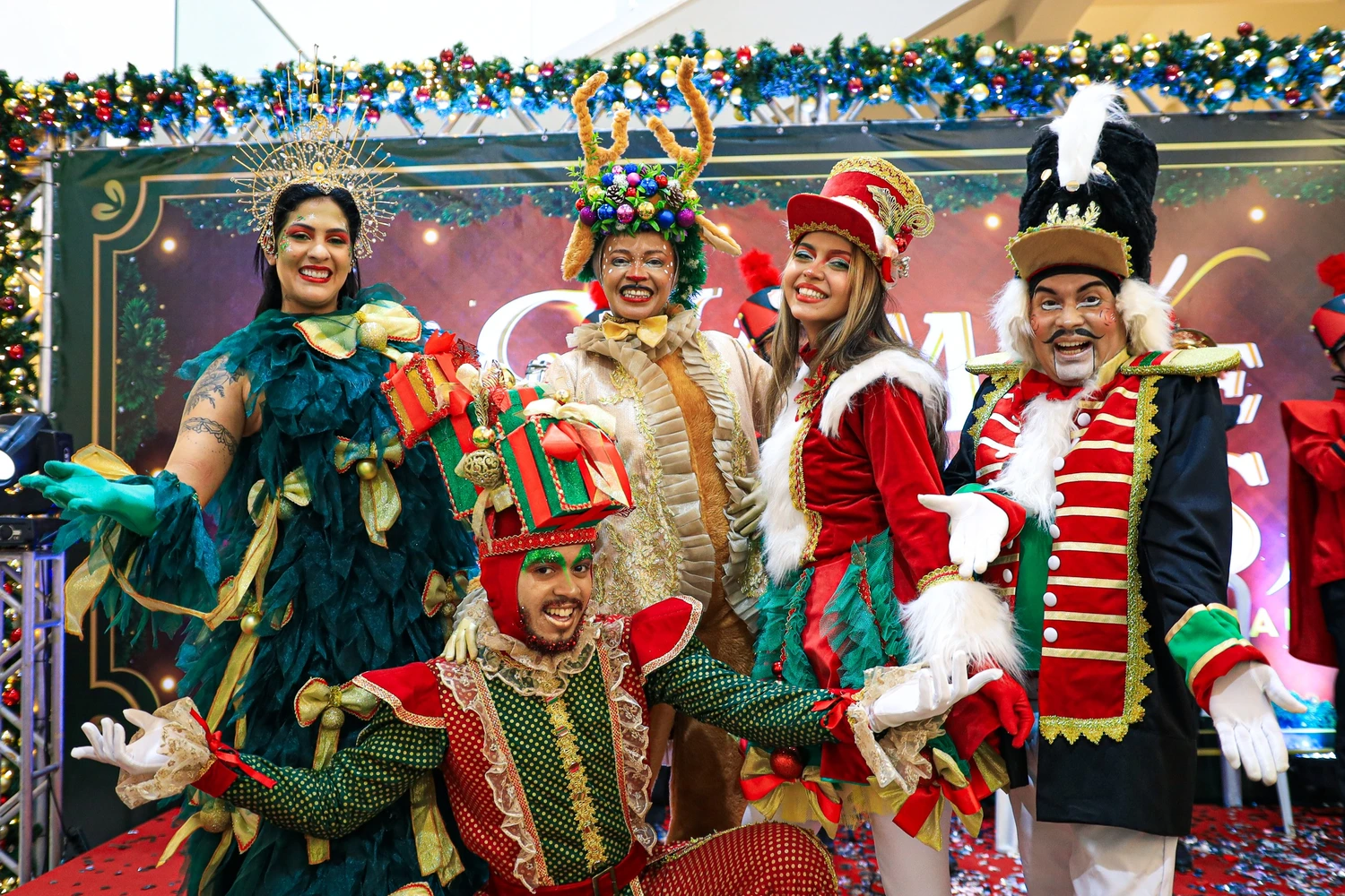 Com música ao vivo, performances lúdicas, a trupe criou momentos inesquecíveis, reforçando a magia do Natal.